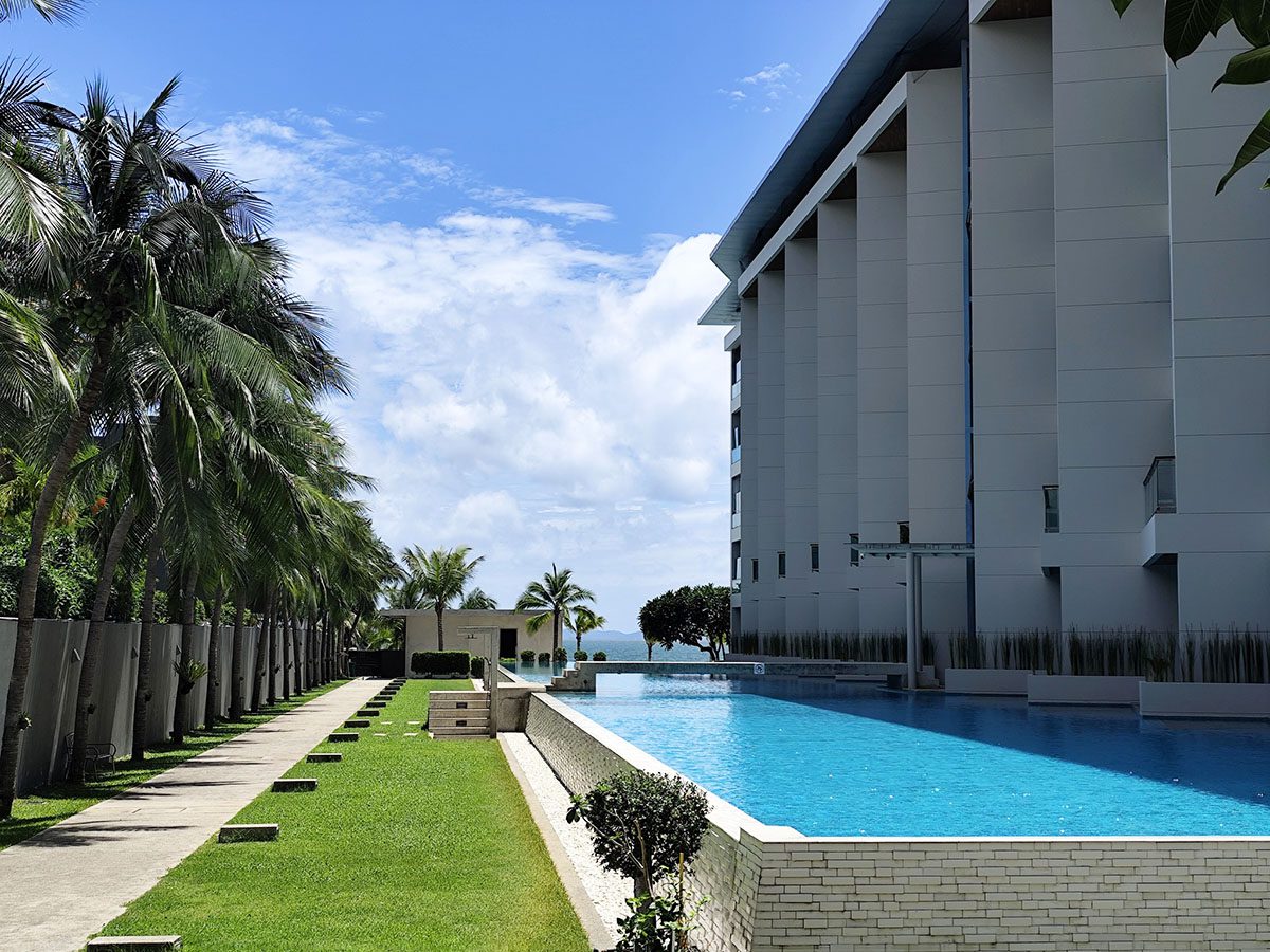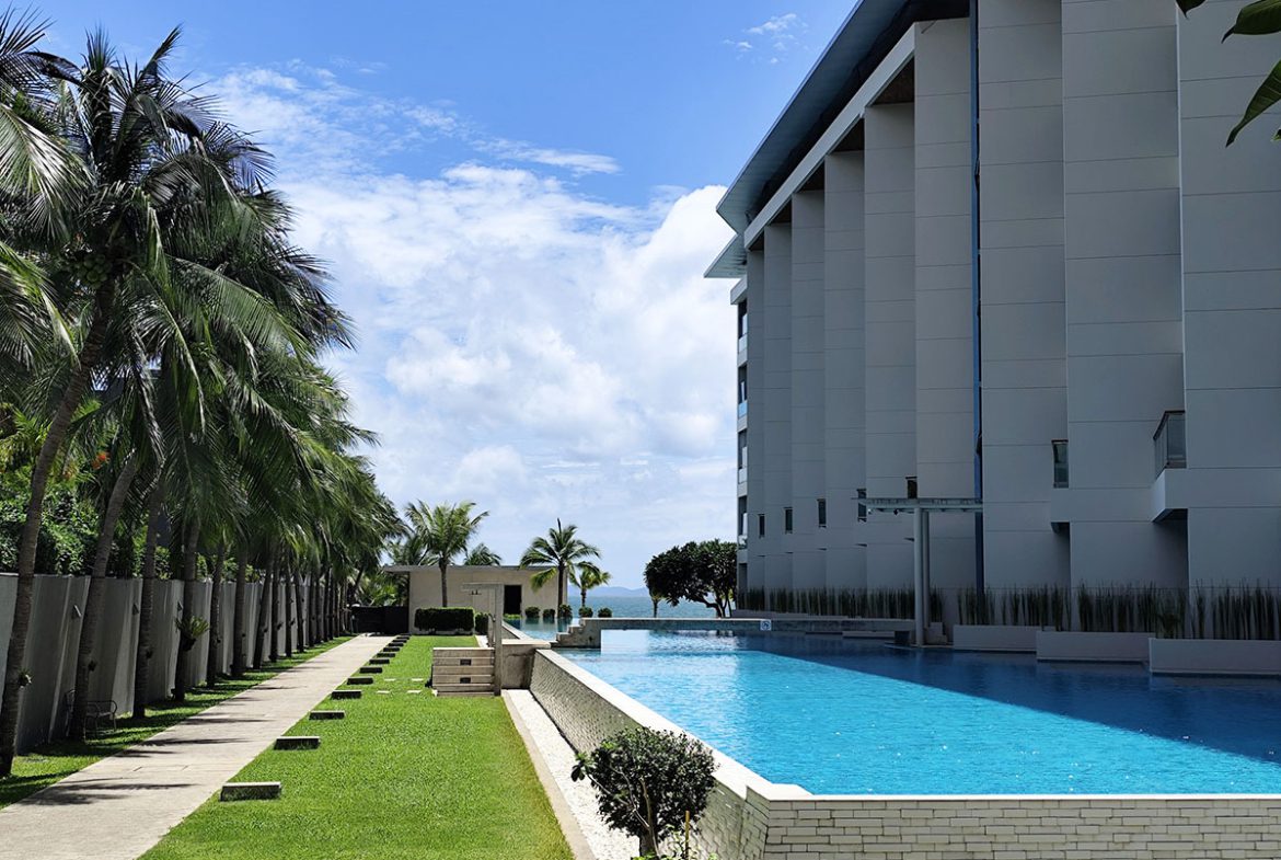 This 2 Bedroom Condo for sale is located in Ananya Beachfront development in Wongamat Thailand and has 2 Communal Pools . The property has a living area of 153.8 sq/m including 2 Bedroom and 2 Bathroom, being sold fully furnished and maintained to a high standard. This Condo is currently available on the market for sale at ฿ 15,500,000 which equates to ฿ 100,780 per sq/m. This property is being sold under Foreign ownership. The development has underground parking, Gymnasium, CCTV and 24 hour security.
