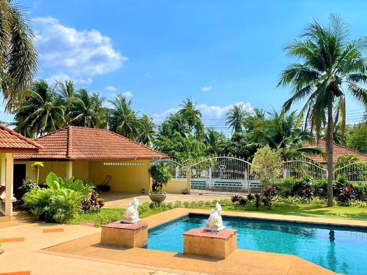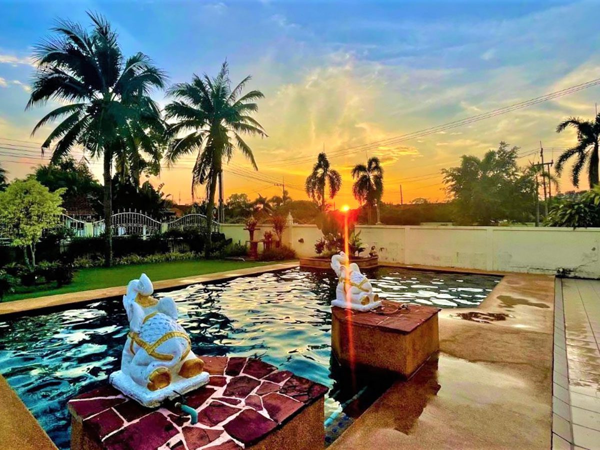 This Pattaya Pool Villa for rent is located in Nong Pla Lai Thailand and has a Private Pool . The property is situated on 956 sq/m of land and has a living area of 300 sq/m including 4 Bedrooms and 5 Bathrooms. This house is currently available on the market for rent at ฿ 50,000 This house is being advertised Fully Furnished . Please contact a member of Best Pattaya Property’s helpful team to learn more about this excellent Thailand Property for rent and the surrounding area.