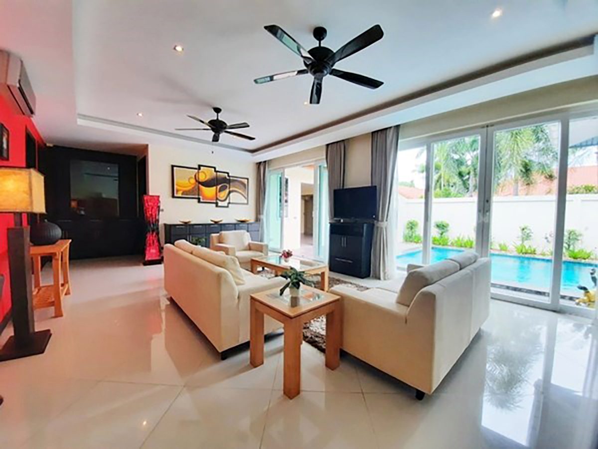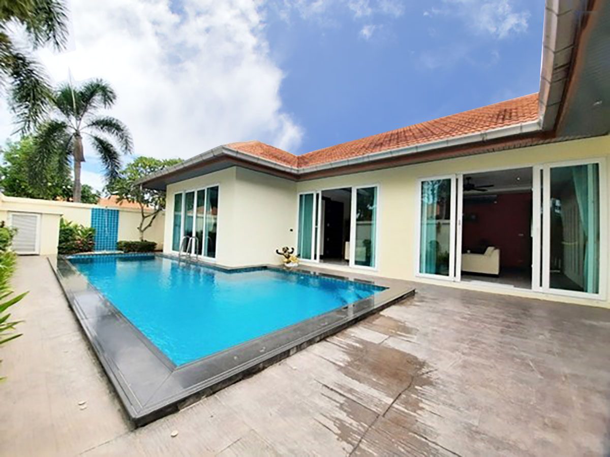 This Pattaya Pool Villa for sale/rent is located in Whispering Palms development in East Pattaya Thailand and has a Private Pool . The property is situated on 450.8 sq/m of land and has a living area of 210 sq/m including 4 Bedrooms and 5 Bathrooms. This house is currently available on the market for sale at ฿ 11,900,000 which equates to ฿ 56,667 per sqm and for rent at ฿ 65,000. This house is being advertised Fully Furnished is in Company ownership with a Pool view . Please contact a member of Best Pattaya Property’s helpful team to learn more about this excellent Thailand Property for sale/rent and the surrounding area.