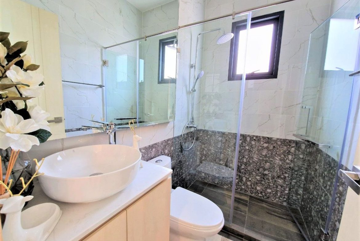 This Pattaya Pool Villa for sale is located in Baan Mae Villa development in East Pattaya Thailand and has a Private Pool . The property is situated on 432 sq/m of land and has a living area of 221 sq/m including 3 Bedrooms and 4 Bathrooms. This house is currently available on the market for sale at ฿ 11,990,000 which equates to ฿ 54,253 per sqm. This house is being advertised Fully Furnished is in Thai ownership with a Village view . Please contact a member of Best Pattaya Property’s helpful team to learn more about this excellent Thailand Property for sale and the surrounding area.