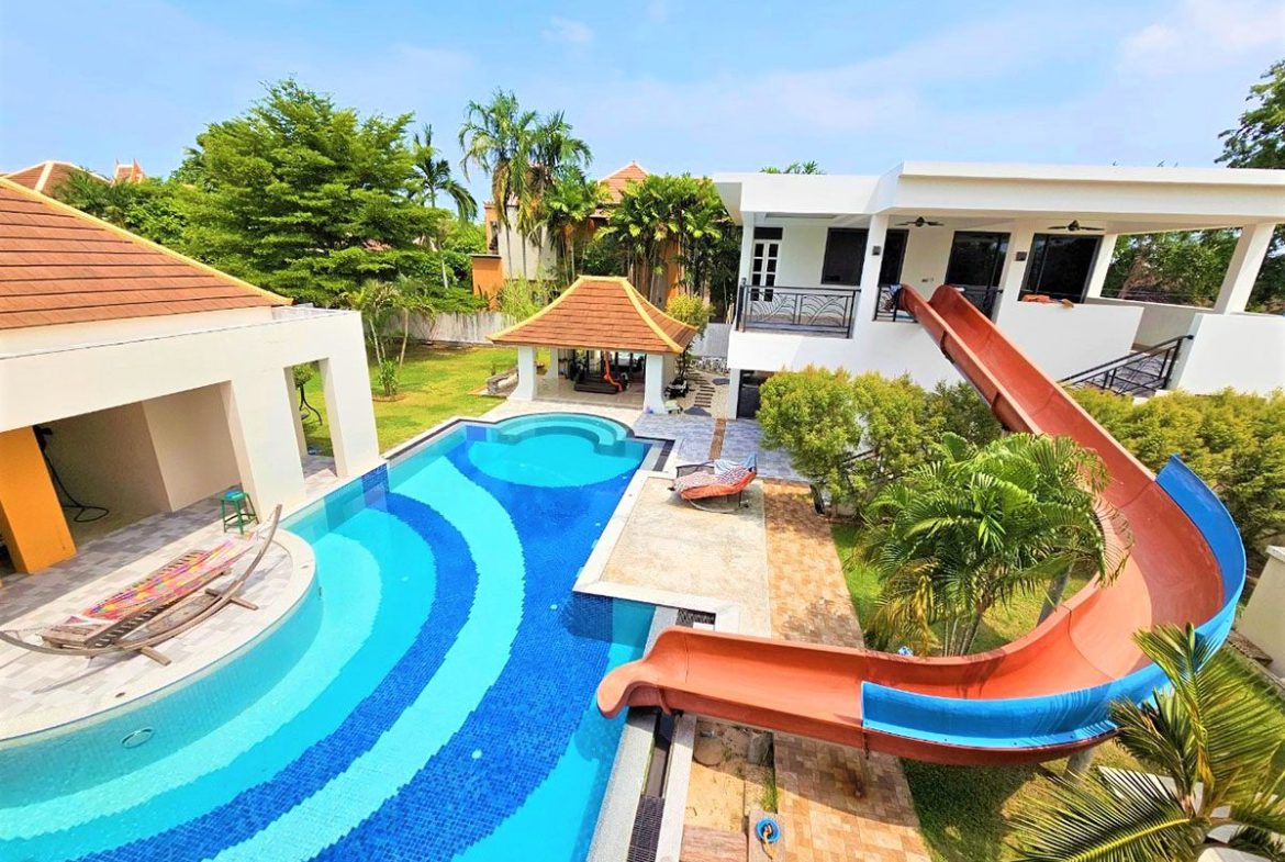 This Pattaya Pool Villa for sale is located in Phutara development in East Pattaya Thailand and has a Private Pool . The property is situated on 1534 sq/m of land and has a living area of 1050 sq/m including 7 Bedrooms and 6 Bathrooms. This house is currently available on the market for sale at ฿ 49,000,000 which equates to ฿ 46,667 per sqm. This house is being advertised Fully Furnished is in Thai ownership with a Village view . Please contact a member of Best Pattaya property’s helpful team to learn more about this excellent Thailand Property for sale and the surrounding area.