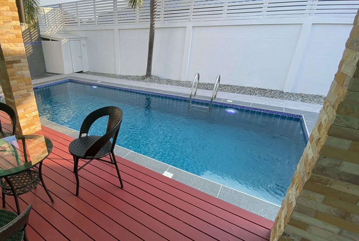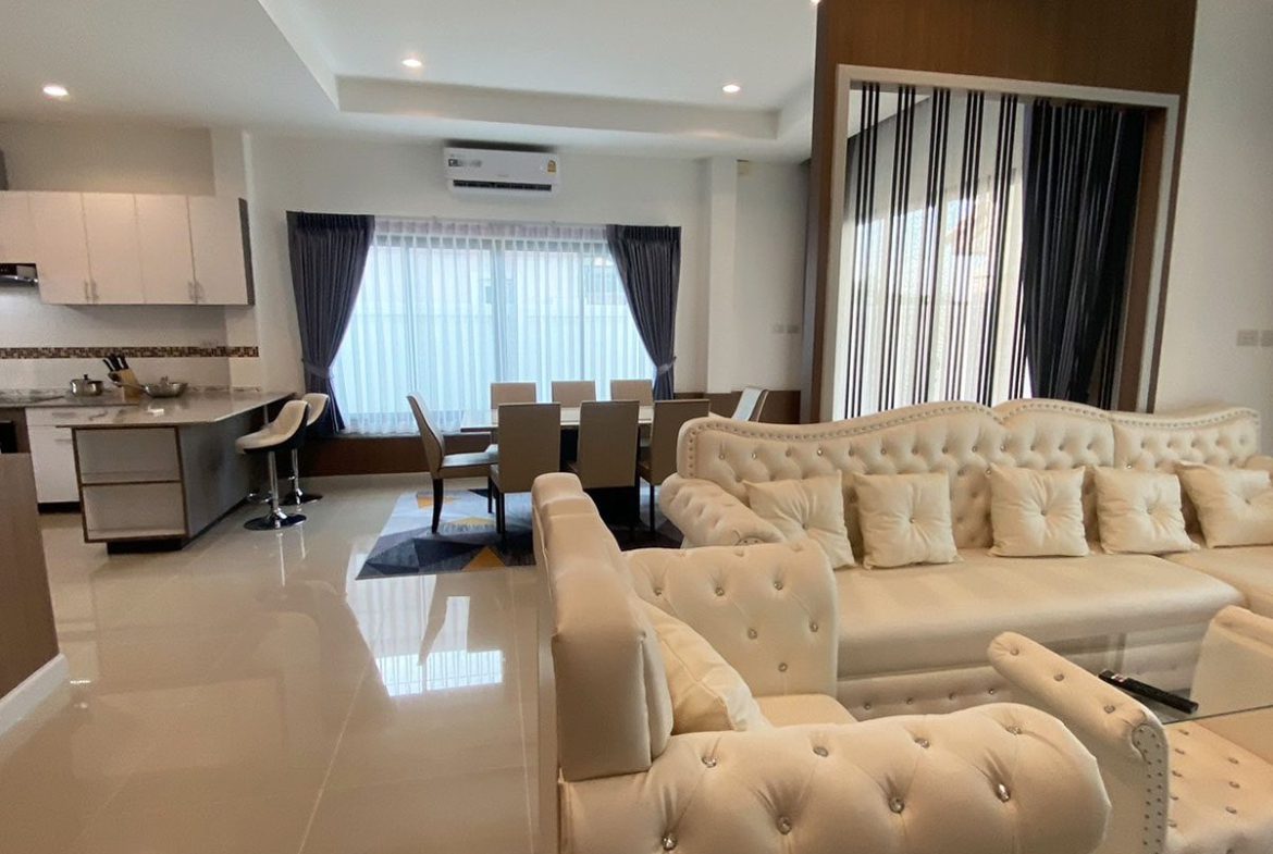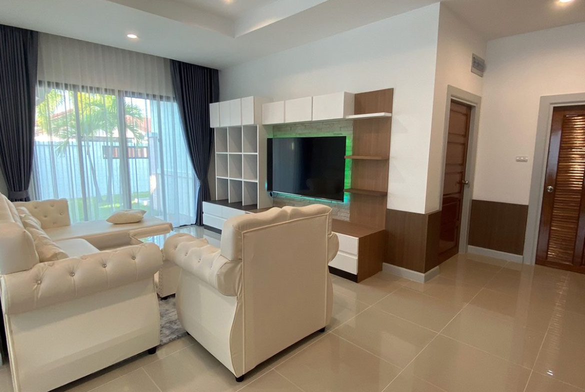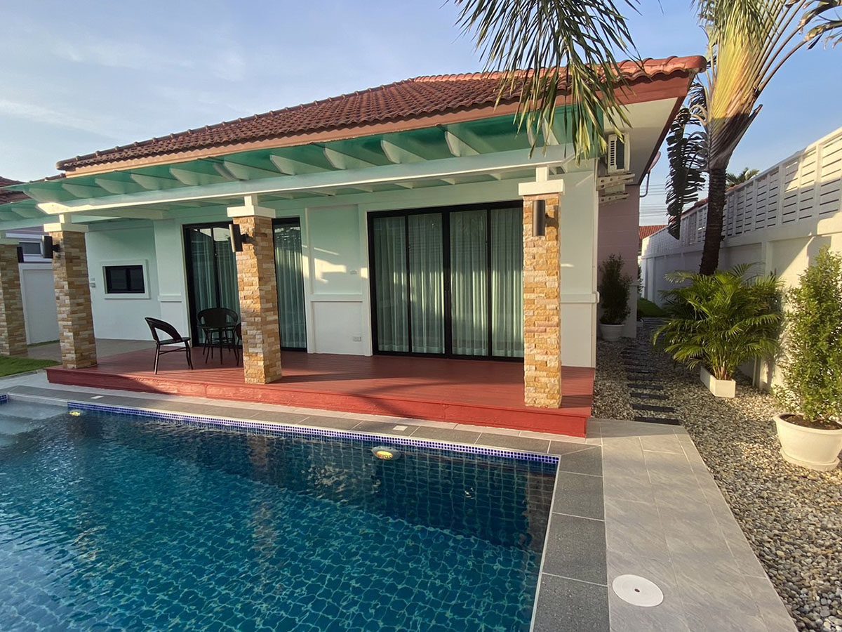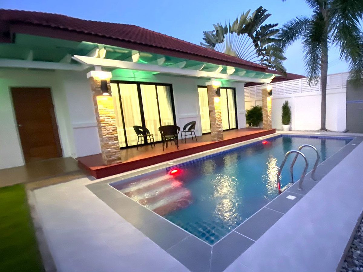 This Pattaya Pool Villa for sale/rent is located in The Bliss 2 development in Huay Yai Thailand and has a Private Pool . The property is situated on 400 sq/m of land and has a living area of 200 sq/m including 3 Bedrooms and 2 Bathrooms. This house is currently available on the market for sale at ฿ 7,690,000 which equates to ฿ 38,450 per sqm and for rent at ฿ 62,000. This house is being advertised Fully Furnished is in Thai ownership with a Village view . Please contact a member of Best Pattaya Property’s helpful team to learn more about this excellent Thailand Property for sale/rent and the surrounding area.