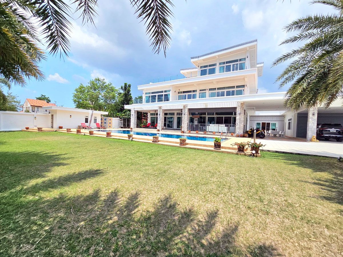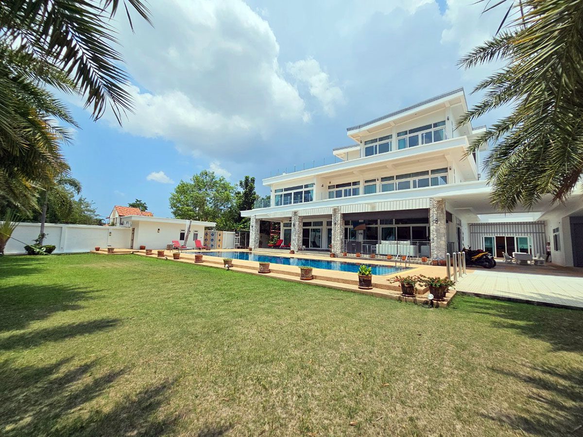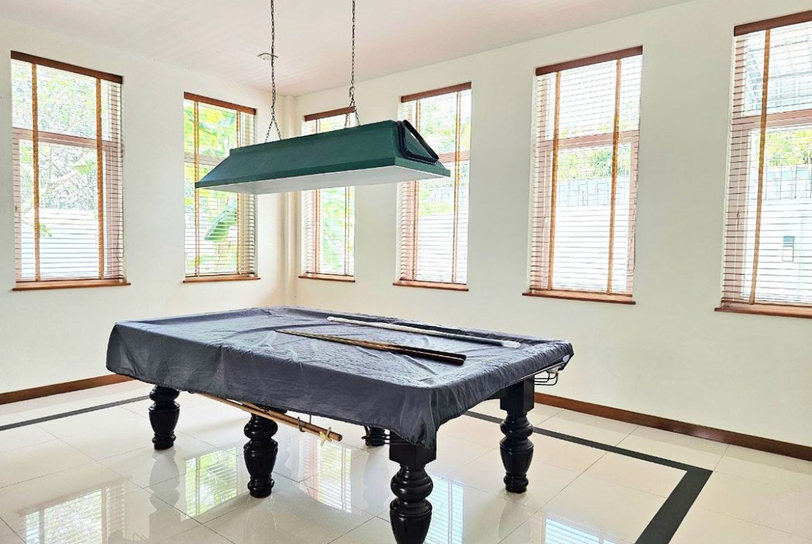 This Pattaya Pool Villa for sale is located in Mabprachan Lake Thailand and has a Private Pool . The property is situated on 1596 sq/m of land and has a living area of 750 sq/m including 4 Bedrooms and 6 Bathrooms. The property boasts large living areas, large garden, an office, Snooker room, private gymnasium area and a maids quarters. This house is currently available on the market for sale at ฿ 32,000,000 which equates to ฿ 42,667 per sqm. This house is being advertised Fully Furnished is in Company ownership . Please contact a member of Best Pattaya Property’s helpful team to learn more about this excellent Thailand Property for sale and the surrounding area.