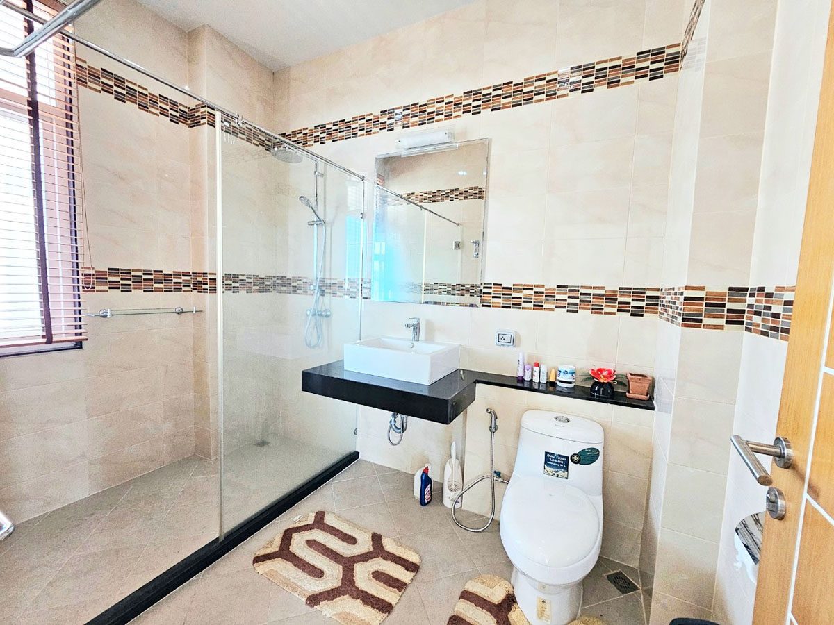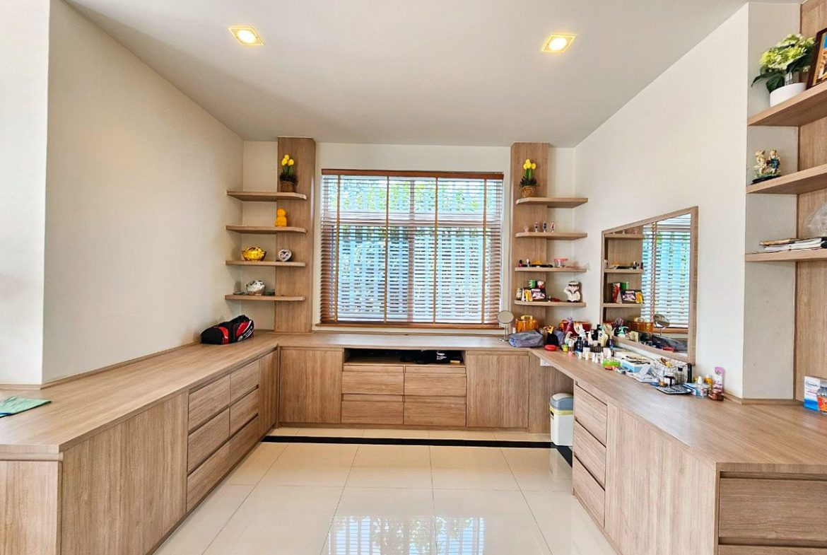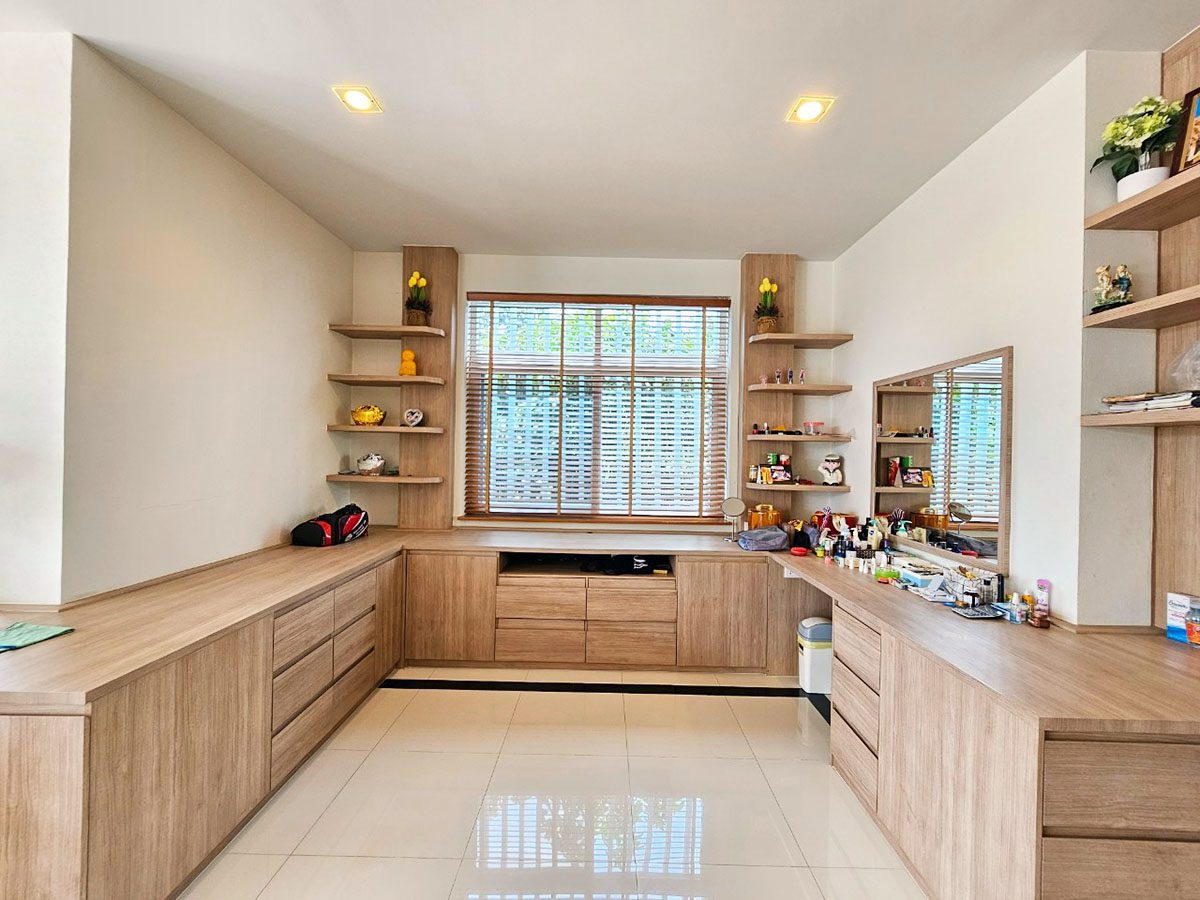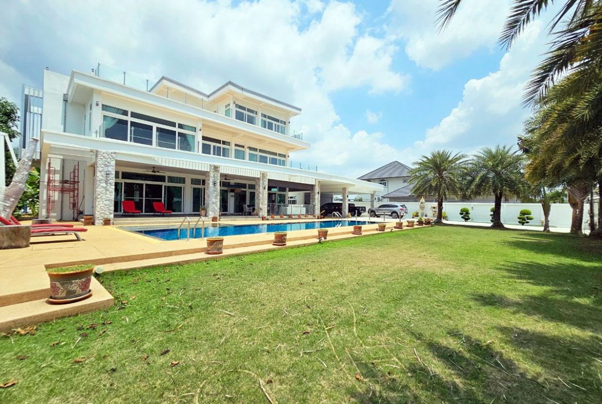 This Pattaya Pool Villa for sale is located in Mabprachan Lake Thailand and has a Private Pool . The property is situated on 1596 sq/m of land and has a living area of 750 sq/m including 4 Bedrooms and 6 Bathrooms. The property boasts large living areas, large garden, an office, Snooker room, private gymnasium area and a maids quarters. This house is currently available on the market for sale at ฿ 32,000,000 which equates to ฿ 42,667 per sqm. This house is being advertised Fully Furnished is in Company ownership . Please contact a member of Best Pattaya Property’s helpful team to learn more about this excellent Thailand Property for sale and the surrounding area.