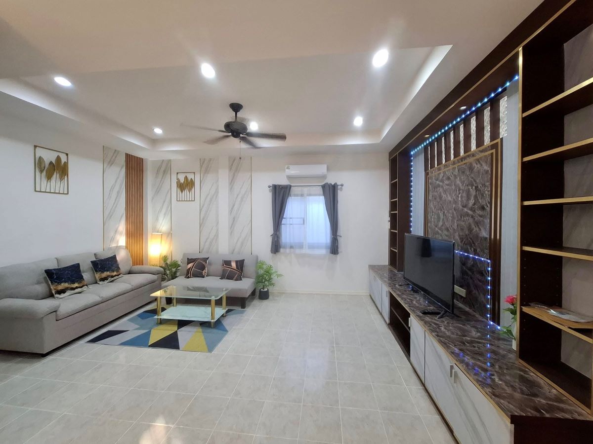 This Pattaya house for sale is located in Hauy Yai Pattaya. The property is situated on 240 sq/m of land and has a living area of 150 sq/m including 3 Bedrooms and 2 Bathrooms. This house is currently available on the market for sale at ฿ 3,290,000 . This house is being advertised Fully Furnished is in Thai ownership.