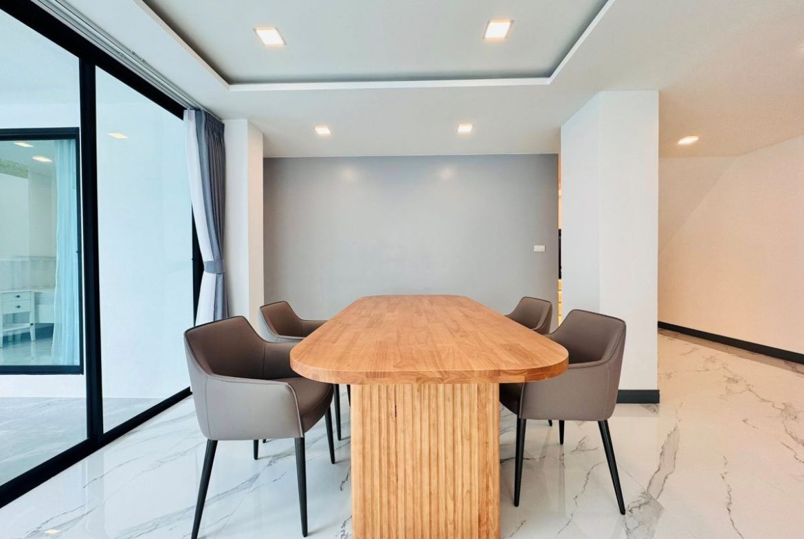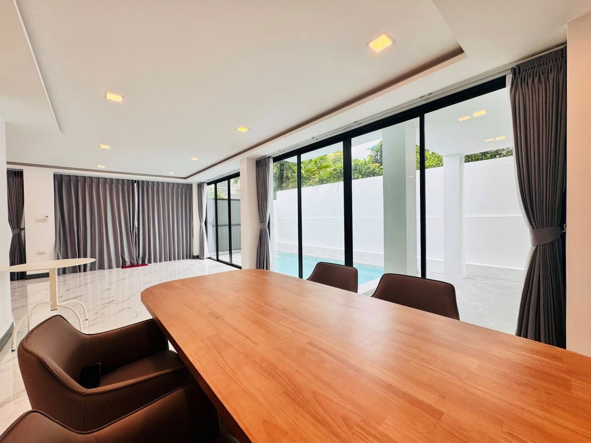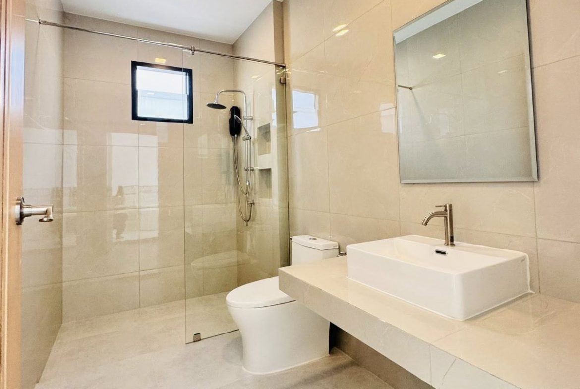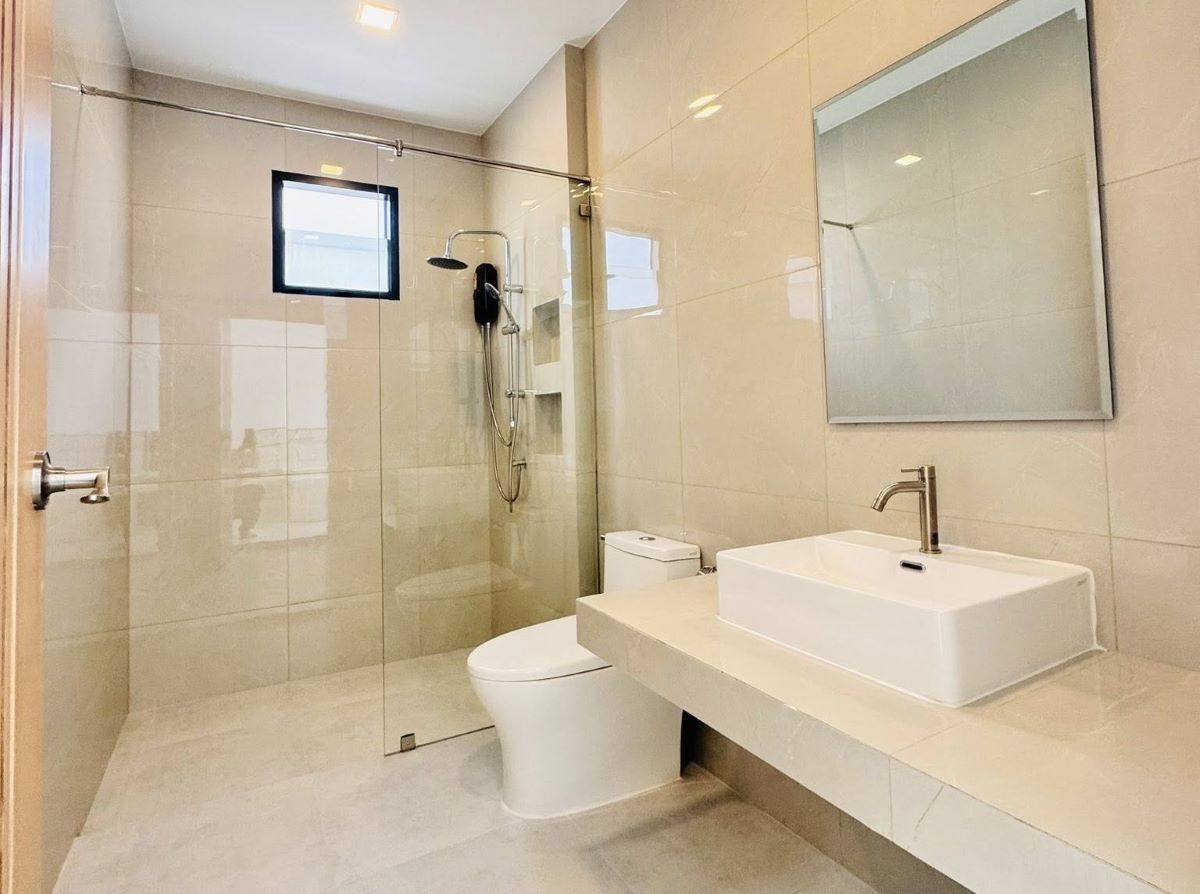 This Pattaya house for sale is located in Jomtien Pattaya Thailand. The property is situated on 200 sq/m of land and has a living area of 200 sq/m including 5 Bedrooms and 7 Bathrooms. This house is currently available on the market for Sale at ฿ 18,900,000 in Thai Company Name ownership. This house is being advertised Fully Furnished with a Village view .