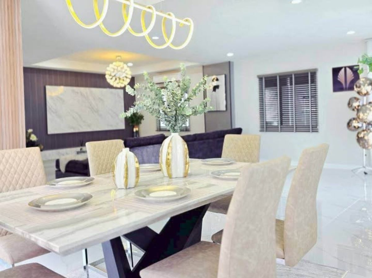 This Pattaya Pool Villa for sale is located in Green Field Villa 2 Soi Khao Noi ,East Pattaya, The property is situated on 464 sq/m of land and has a living area of 240 sq/m including 4 Bedrooms and 5 Bathrooms. This house is currently available on the market for sale at ฿ 14,500,000 THB.