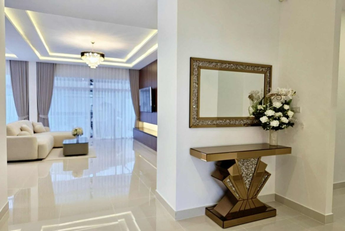 This Pattaya house for sale is located in East Pattaya Thailand . The property is situated on 416 sq/m of land and has a living area of 180 sq/m including 3 Bedrooms and 2 Bathrooms. This house is currently available on the market for sale at ฿ 9,500,000 . This house is being advertised Fully Furnished is in Thai ownership.