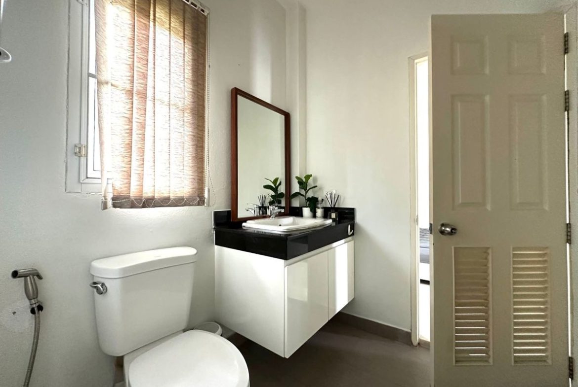 This Pattaya house for sale is located in Huai Yai Pattaya Thailand . The property is situated on 464 sq/m of land and has a living area of 200 sq/m including 3 Bedrooms and 2 Bathrooms. This house is currently available on the market for sale at ฿ 8,950,000 . This house is being advertised Fully Furnished is in Thai company name ownership.