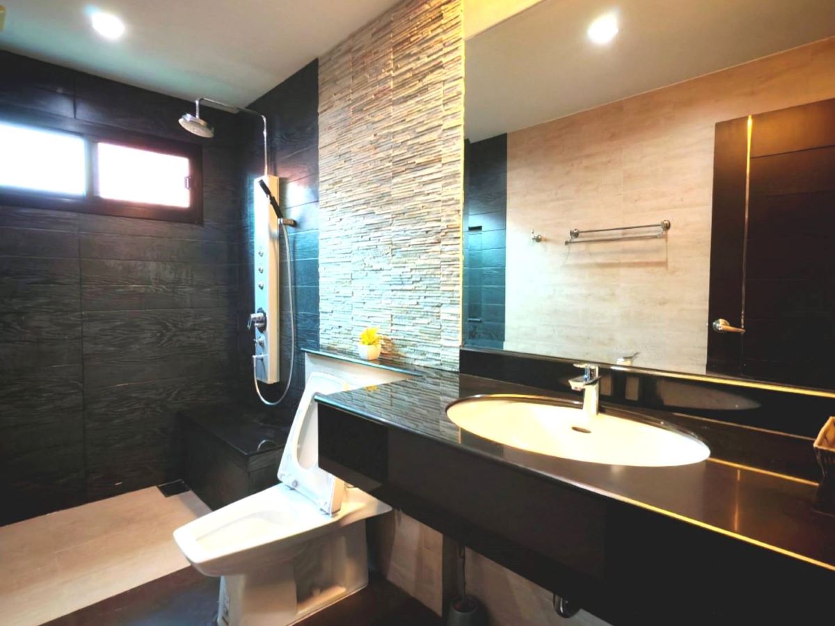 This Pattaya house for sale is located in Baan Balina 4 Village in Huay Yai ,Pattaya Thailand . The property is situated on 540.4 sq/m of land and has a living area of 200 sq/m including 2 Bedrooms and 2 Bathrooms. This house is currently available on the market for sale at ฿ 9,500,000 . This house is being advertised Fully Furnished is in Thai ownership.And for rent 45,000 Baht/Month/Year contract ,2 months deposit and 1 month advance.