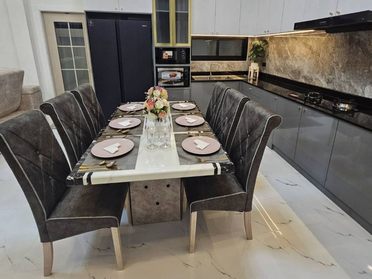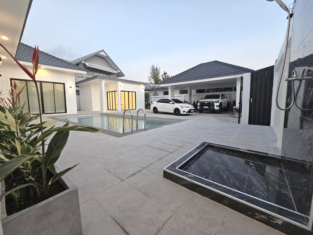 This Newly Pool villa house for Sale are located in Pattaya Green Ville in Soi Siam Country Club, Pattaya, Thailand. The property is situated on 492 sq/m of land and has a living area of 300 sq/m including 4 Bedrooms and 5 Bathrooms. This house is currently available on the market for sale at ฿ 9,900,000 This house is being sold Fully Furnished and is currently under Company Ownership.