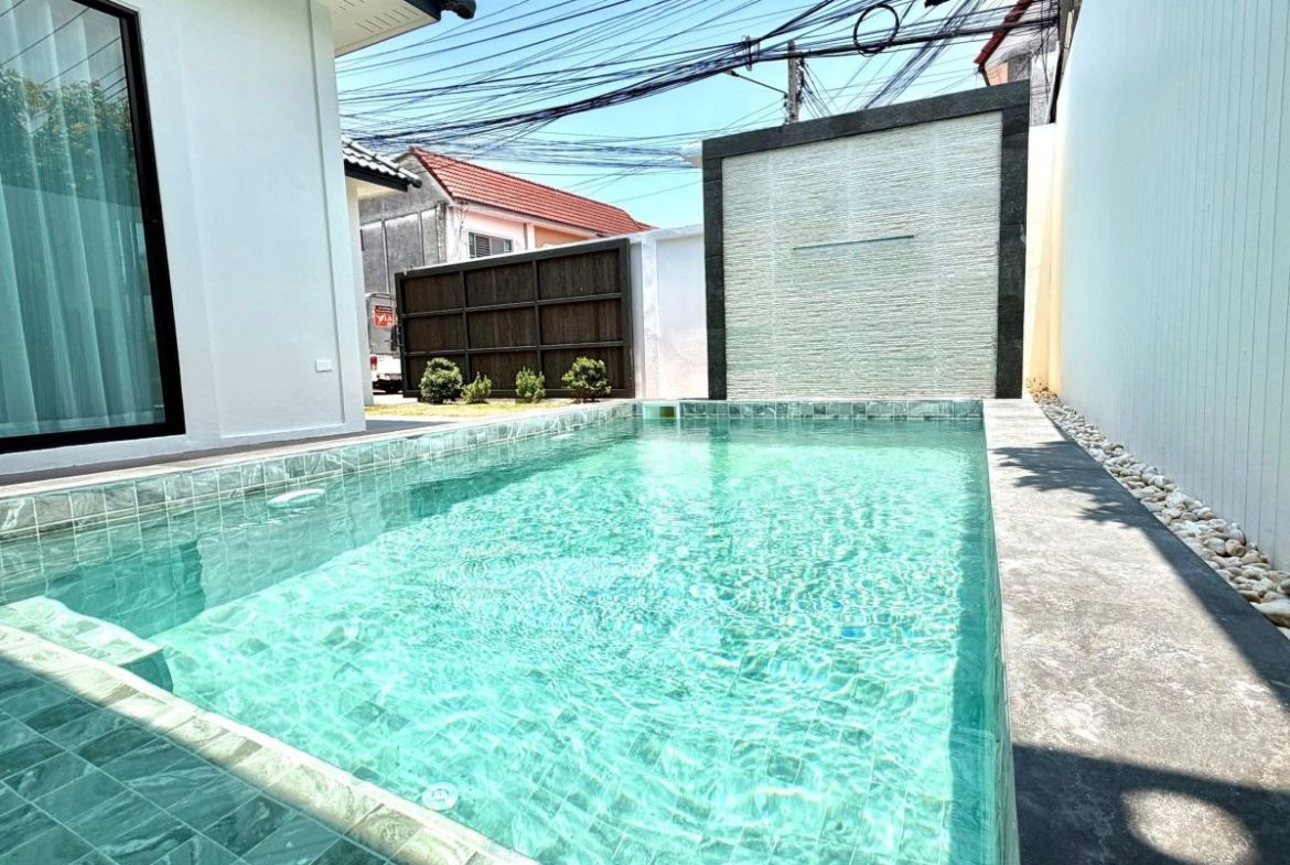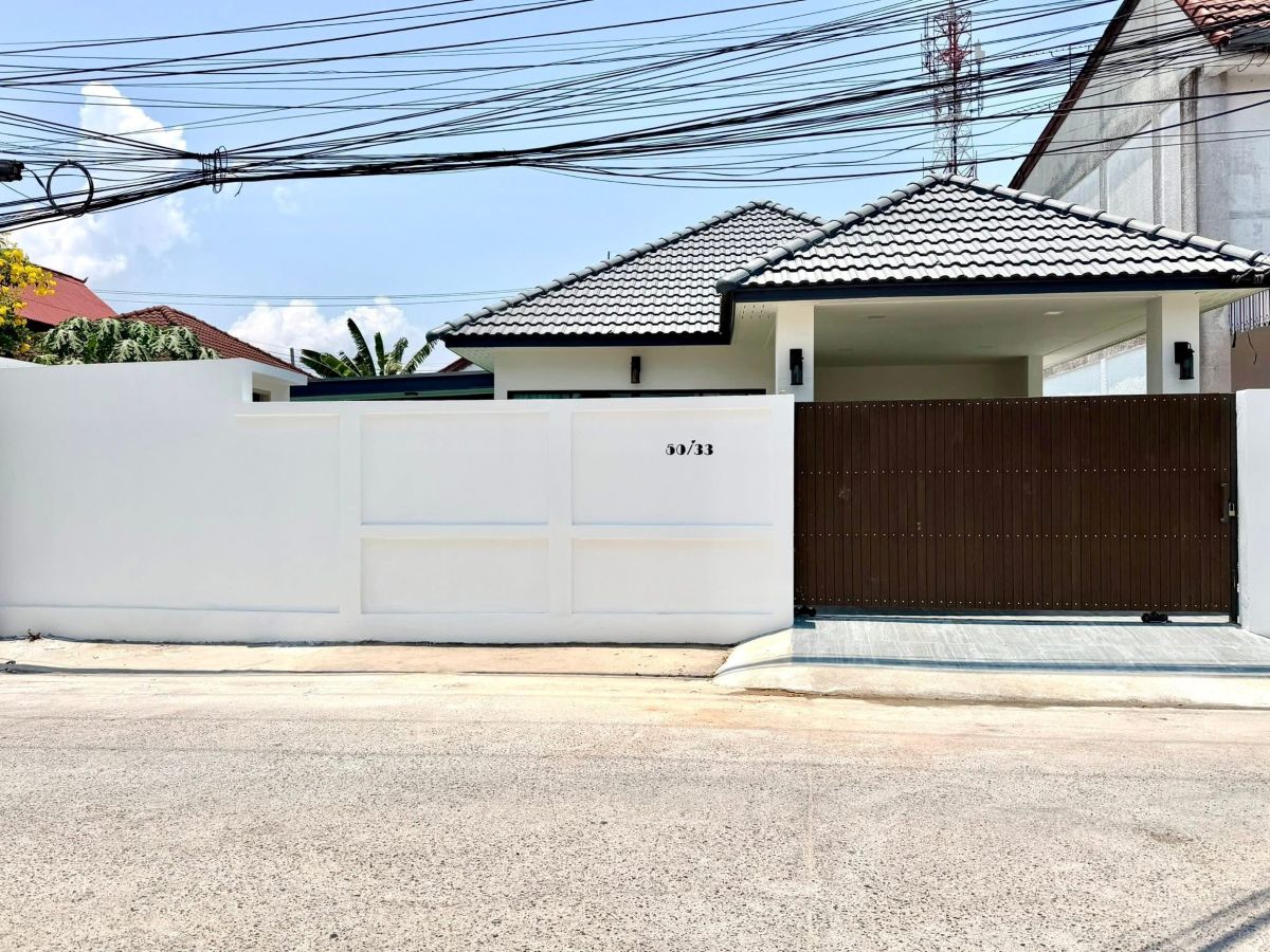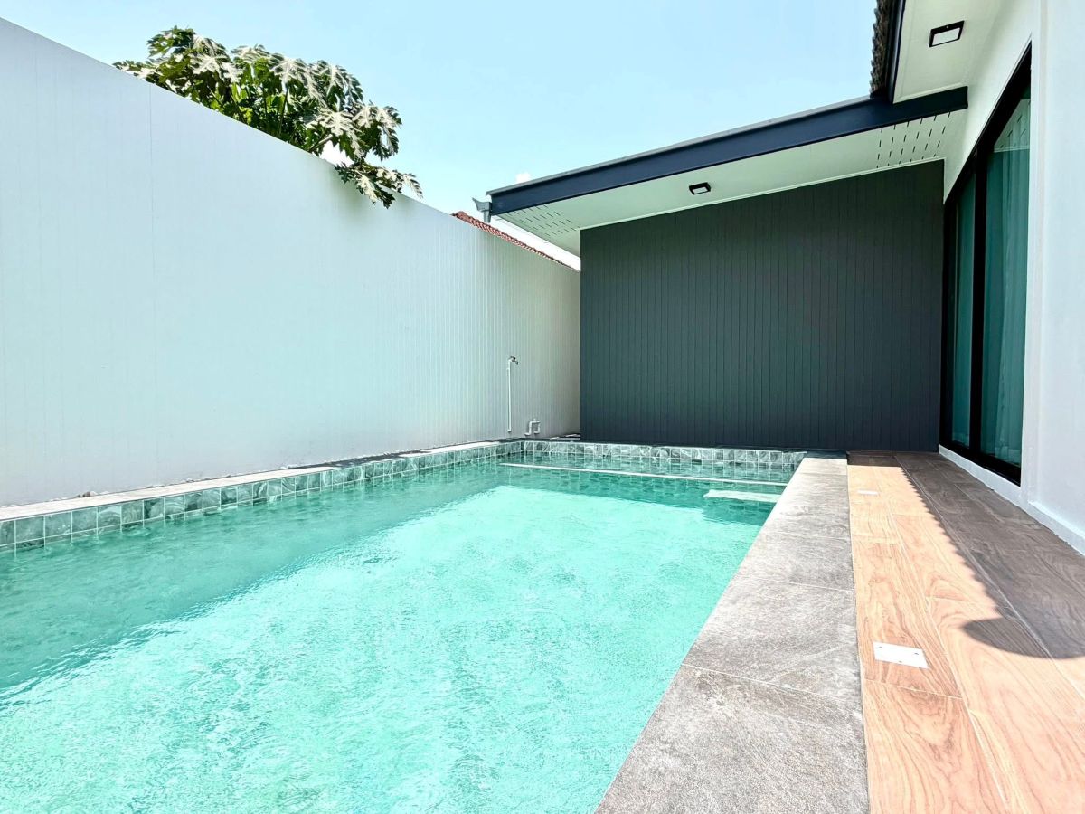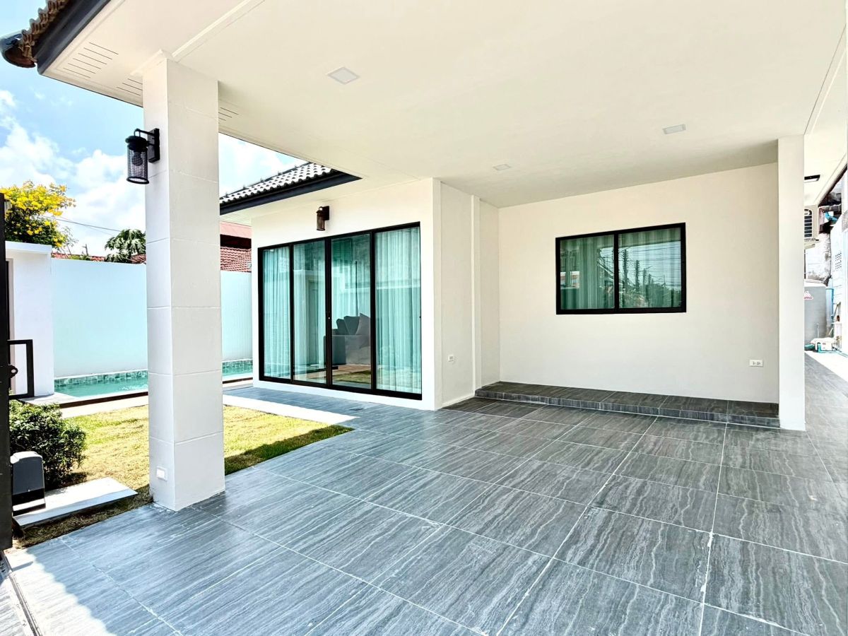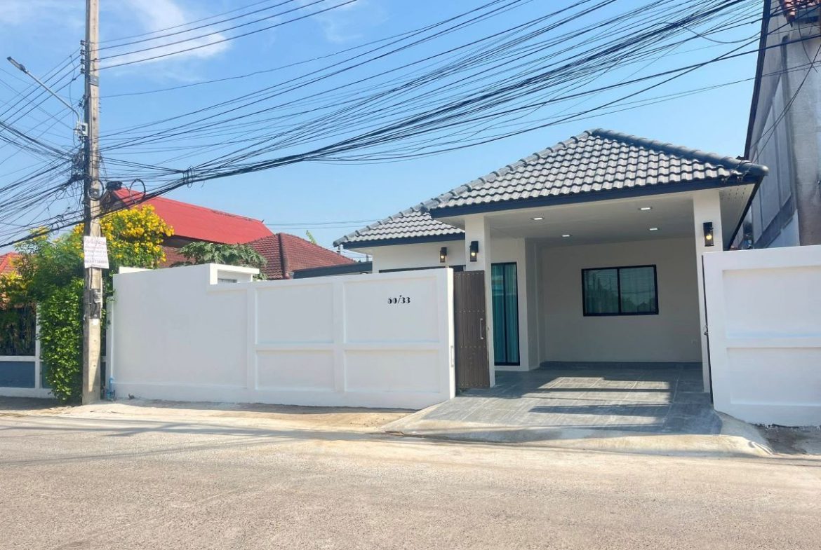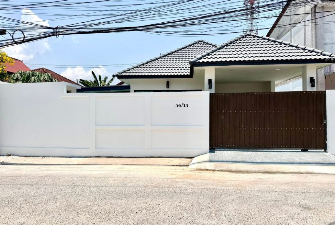 This Newly renovated Pool villa house for Sale are located in Rung Rueng Village in Soi Noen Plub Wan 4, Pattaya, Thailand. The property is situated on 199.2 sq/m of land and has a living area of 120 sq/m including 3 Bedrooms and 2 Bathrooms. This house is currently available on the market for sale at ฿ 4,990,000 This house is being sold Fully Furnished and is currently under Company Ownership.