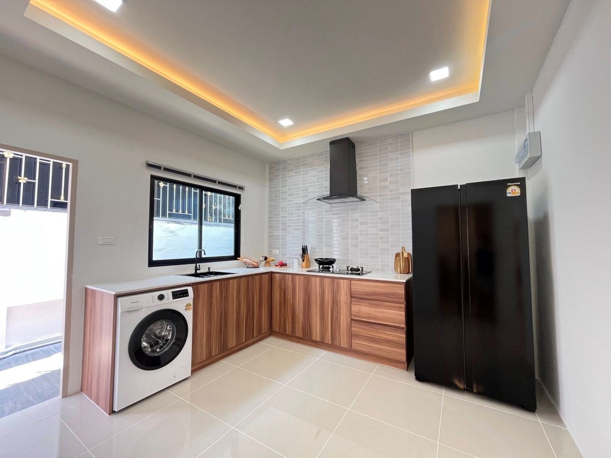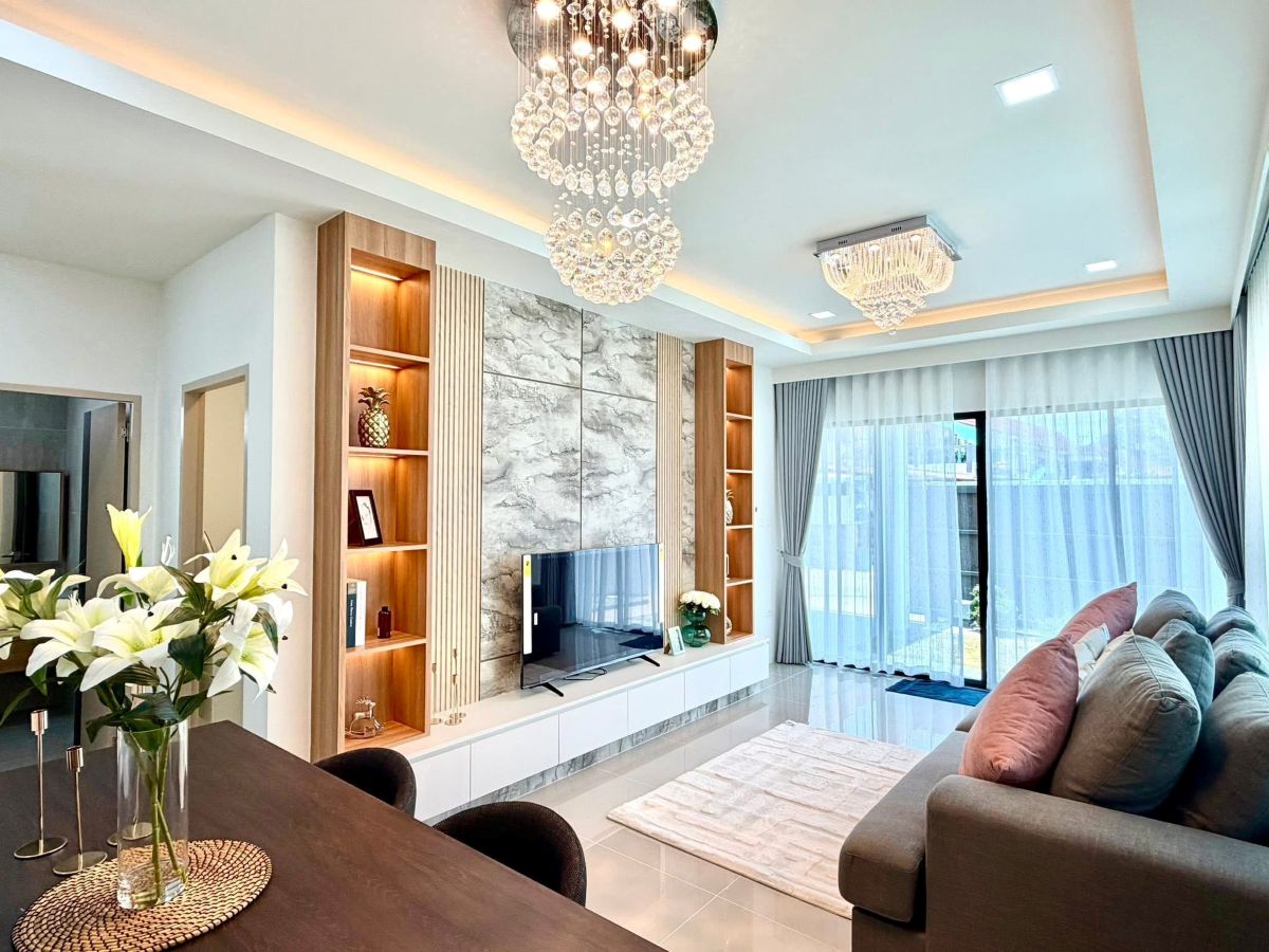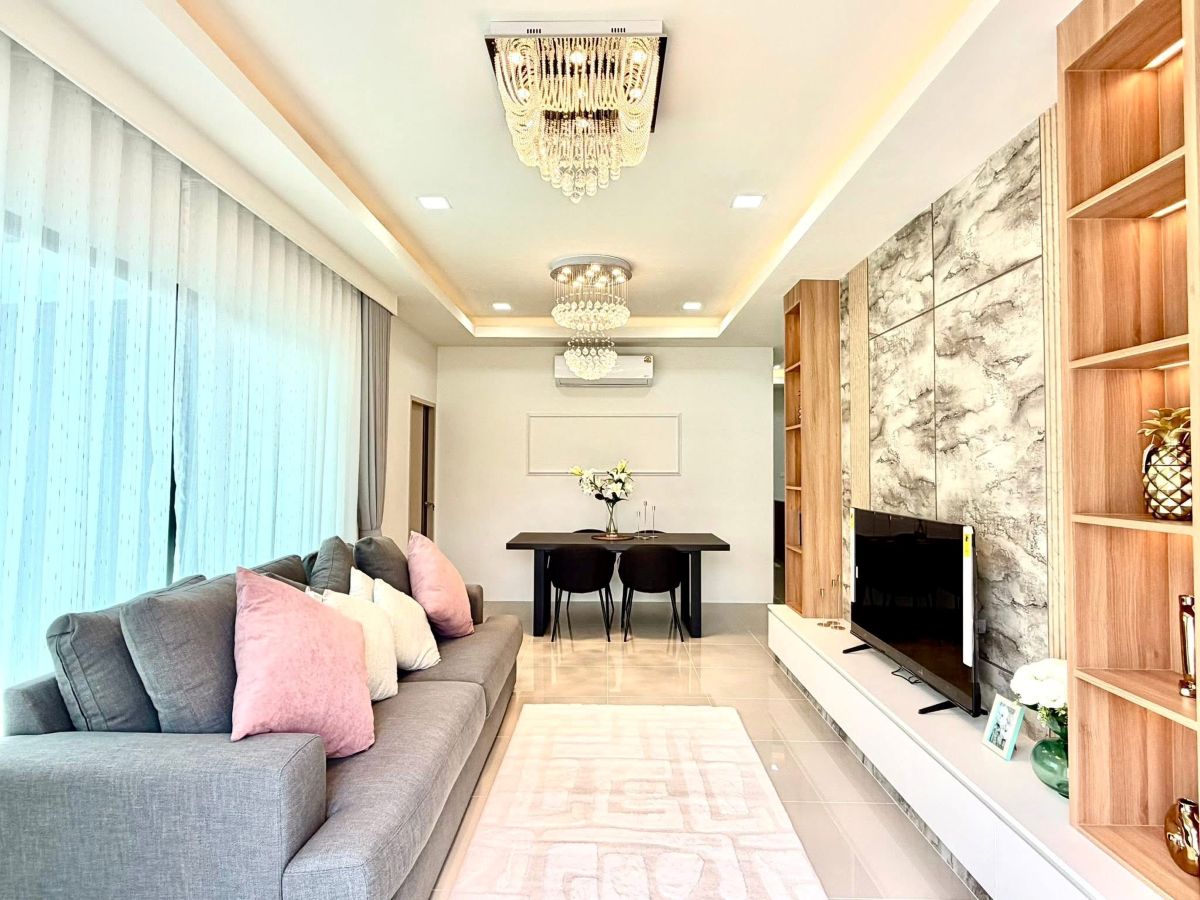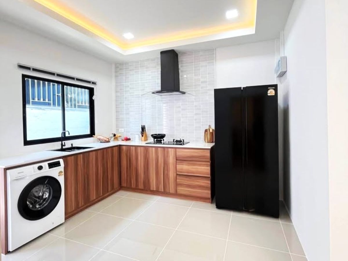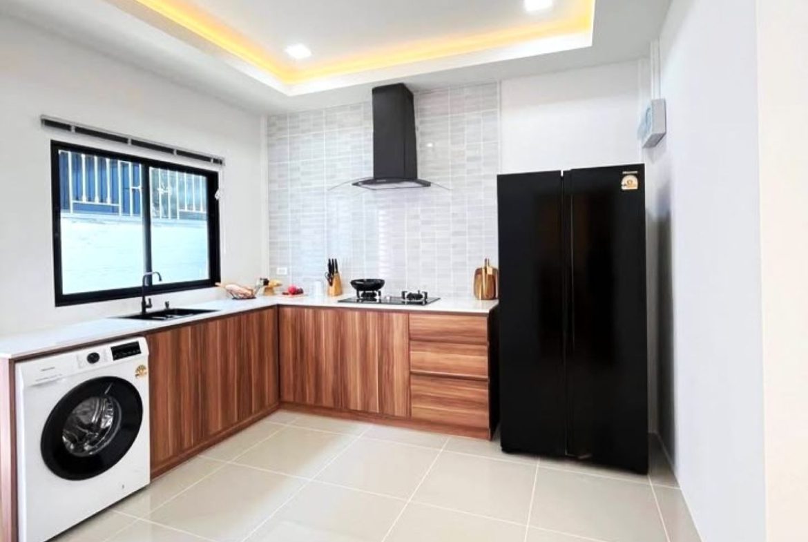 This Newly renovated Pool villa house for Sale are located in Rung Rueng Village in Soi Noen Plub Wan 4, Pattaya, Thailand. The property is situated on 199.2 sq/m of land and has a living area of 120 sq/m including 3 Bedrooms and 2 Bathrooms. This house is currently available on the market for sale at ฿ 4,990,000 This house is being sold Fully Furnished and is currently under Company Ownership.