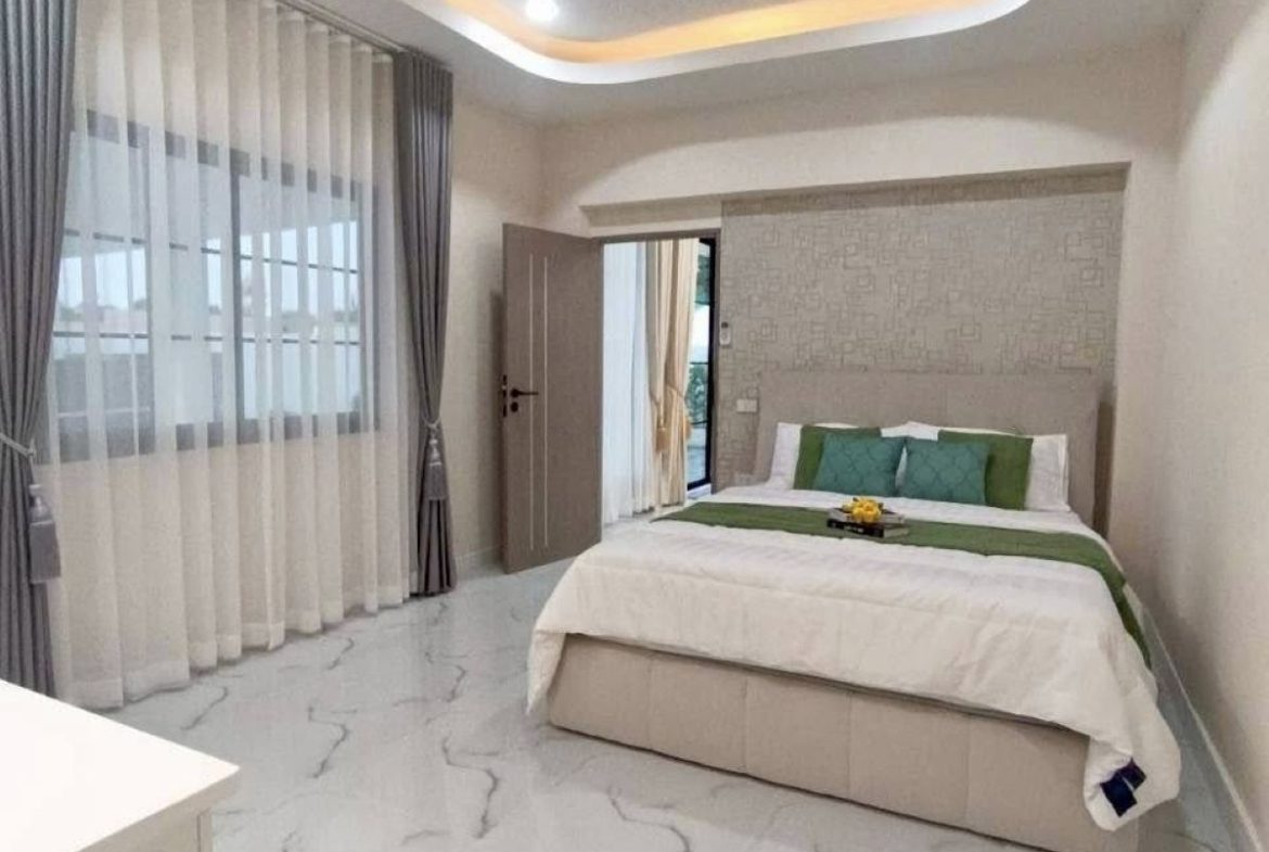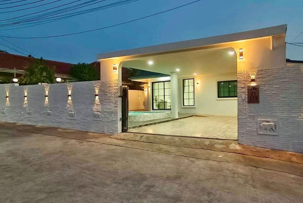 This Pool Villa House for Sale is located in Chockchai Garden Home 2 in Khao Noi, Pattaya Thailand. The property is situated on 448 sq/m of land and has a living area of 220 sq/m and including 4 Bedrooms and 5 Bathrooms. This house is currently available on the market for sale at ฿ 11,900,000 This house is being sold Fully Furnished and is currently under Company Ownership.