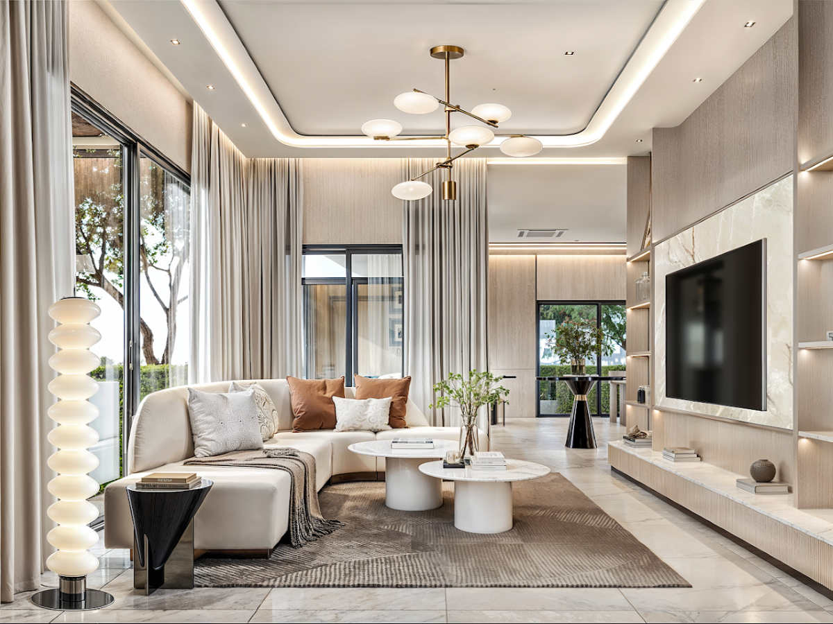 This newly built single houses for Sale are located in The Palm Marena Pattaya in Chaiyapornvitee 25, Nong Prue, Pattaya, Thailand. The property is situated on 224.8 sq/m of land and has a living area of 244 sq/m including 3 Bedrooms and 4 Bathrooms. This house is currently available on the market for sale at ฿ 8,540,000 This house is being sold Fully Furnished and is currently under Company Ownership.