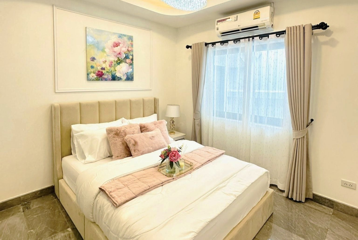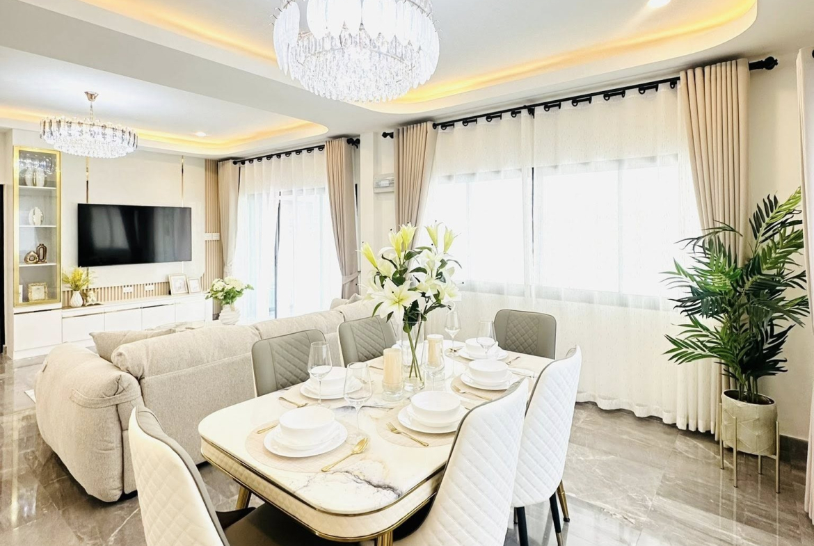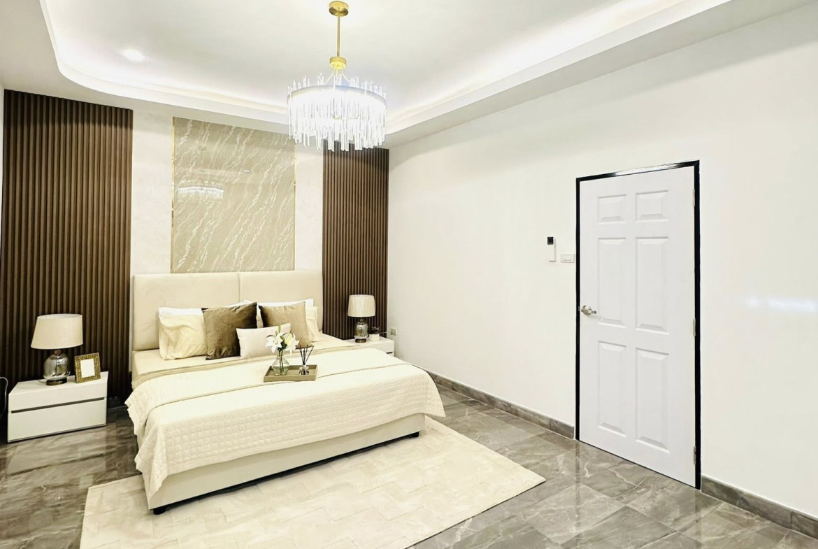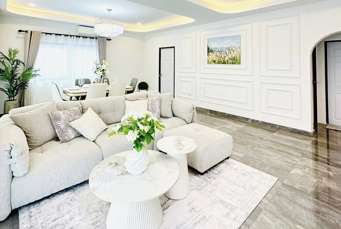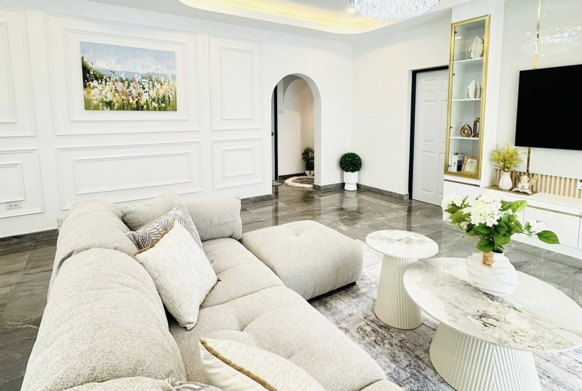 This Single house for sale is located in FanThip Village in Boon Samphan in Nong Prue, Pattaya, Thailand. The property is situated on 240 sq/m of land and has a living area of 140 sq/m including 3Bedrooms and 2 Bathrooms. This house is currently available on the market for sale at ฿ 4,890,000.This house is being advertised Fully Furnished is in Thai ownership.